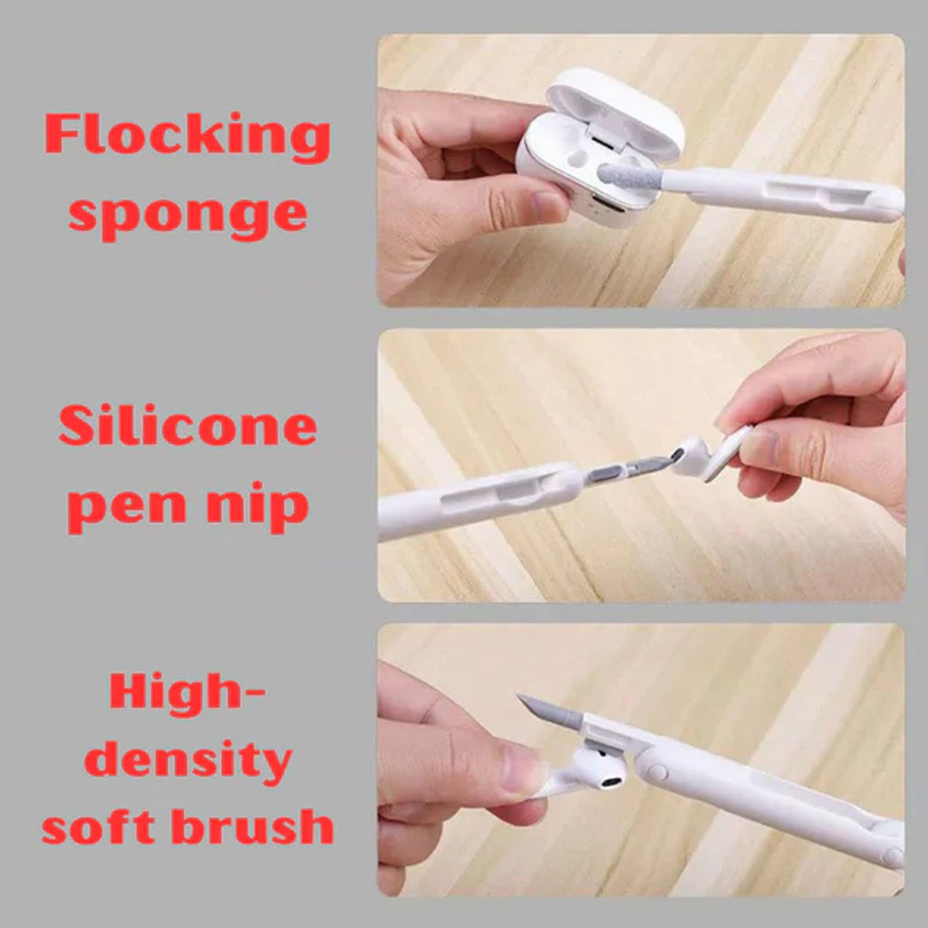 - 3-in-1 Foldable Cleaning Pen - The sharp silicone tip of the earplugs can reach the small gaps of your headphones to clean the earwax and dirt in it, but without causing damage. The mini brush can clean the surface of the headphone network. With the flock sponge brush, you can clean the charging case that you cannot reach. All this can be done with just one foldable earbud cleaning pen.
