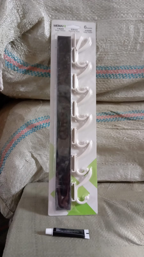 7572 Cloth hanger, Wall Door Hooks Rail for Hanging Clothes for Hanging Hook Rack Rail, Extra Long Coat Hanger Wall Mount for Clothes, Jacket, Hats, 6 Hook With Eco-friendly Liquid Adhesive Glue