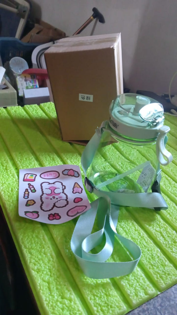 12896 Insulated Water Bottle Portable Water Bottle With Strap, Sticker and Straw Cute Outdoor Sports Bottle For Water Travel Drinkware Jug Travel Water Bottle large Capacity Water Jug, Gym / Kid / Outdoor Sport / Campus, Fashionable (1300 ML Approx)