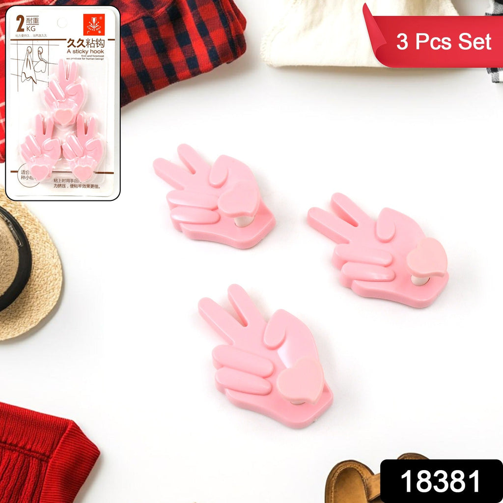 Multipurpose Self-Adhesive hooks for wall Plastic Hook, Sticky Hook Household For Home, Decorative Hooks, Bathroom & All Type Wall Use Hook, Suitable for Bathroom, Kitchen, Office (3 Pcs Set / Mix Design)